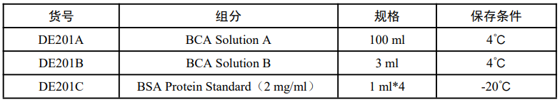 本产品是根据目前常用的蛋白浓度检测方法之一 BCA 法研制而成,BCA 测定方法的原理与 Lowry 法相似,利用Cu 2+在碱性条件下,可以被蛋白质还原成 Cu +,Cu +与 BCA 试剂结合形成紫色的络合物的特性,通过测定样品在562 nm 波长下的吸光值,并同蛋白标准曲线对比,即可计算出待测样品的蛋白浓度。BCA 法与 Lowry 法相比,操作更为简便,稳定性更好。该方法还具有反应产物稳定、灵敏度高、线性范围广、对不同种类蛋白质检测的变异系数小、对去垢剂耐受性好等特点,特别适合于微量测定。