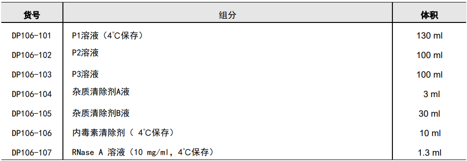 本产品用碱裂解法从培养菌中提取质粒DNA,采用独特的溶液配方和内毒素清除试剂,只需要几次简单离心去除蛋白质、多糖、内毒素、RNA等杂质,获得高质量的质粒DNA。纯化DNA的OD260/280通常在1.8左右,得到的质粒可直接应用于细胞转染甚至动物体内实验等对DNA纯度要求很高的工作中。纯化后期过程均在1.5ml小离心管中操作,方法简单,不需特殊设备,无需过柱,不用酚氯仿抽提;回收细菌裂解释放出的质粒很完全,不必担心质粒DNA的丢失。本方法提取纯化质粒DNA,对质粒损伤小,对于10kb以上的大型质粒或超大型BAC/PAC质粒,只要碱裂解法能够提取,即可做到有效纯化。可选择任意小体积溶解质粒,浓度可高达5μg/μl。超螺旋比例可高达95%,无内毒素,转染效果好。