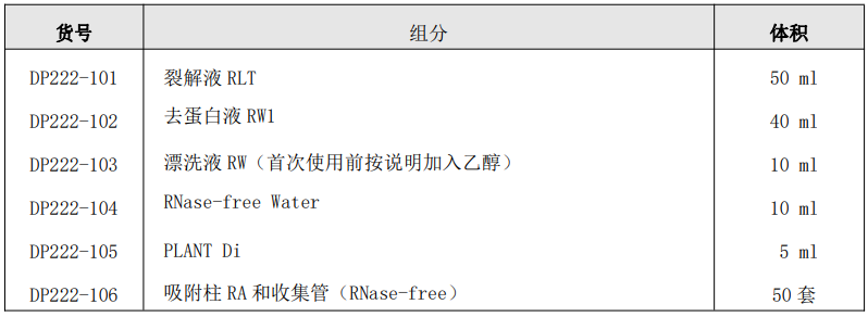 本产品独特的裂解液迅速裂解细胞和灭活细胞 RNA 酶,植物 RNA 助提剂 PLANT Di 帮助结合多糖多酚并通过离心去除,然后用乙醇调节结合条件后,RNA 在高离序盐状态下选择性吸附于离心柱内硅基质膜,通过漂洗和离心的步骤,去蛋白液和漂洗液将细胞代谢物,蛋白等杂质去除, 在低盐 RNase free H20 的洗脱下得到纯净的 RNA。